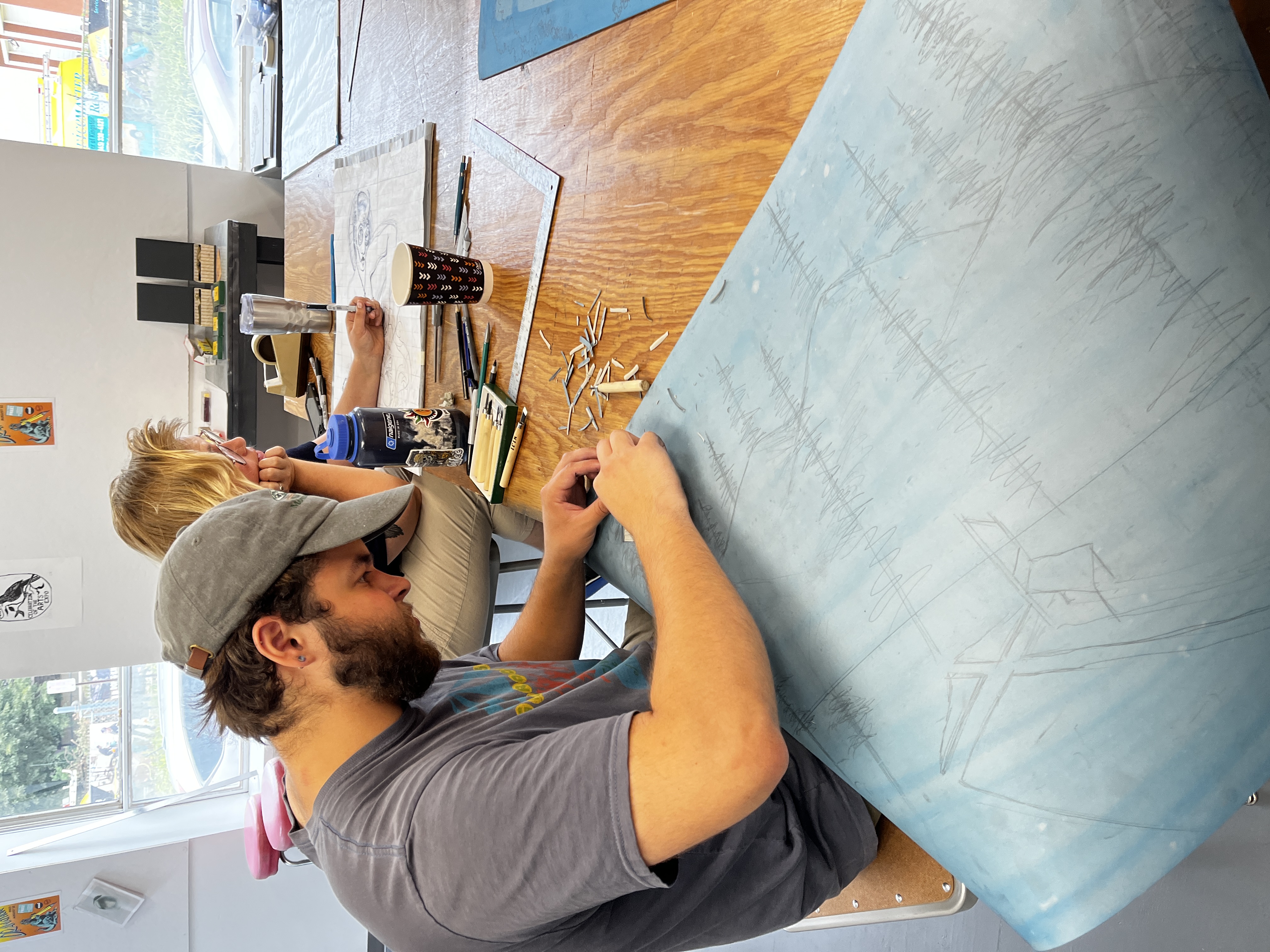 Prints were exhibited and for sale during the event, with 50% going to the artists and 50% going to help fund our new Neighborhood Print Studio. From Sunday afternoons in July through August. D.R.A.W. offered open studio time at Neighborhood Print Studio, 49 Greenkill Ave, ground floor. We welcome all ages to join in and experience it! We had 1′ x 1′ linoleum plates on site for everyone in the community to contribute to the exquisite corpse group image together and 2’ x 2’ or 2’ x 4’ for the invited artists. We printed more than 30 linocut works during the third annual D.R.A.W.-A-Thon Street Block party, on August 12th.
