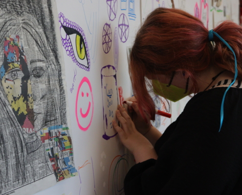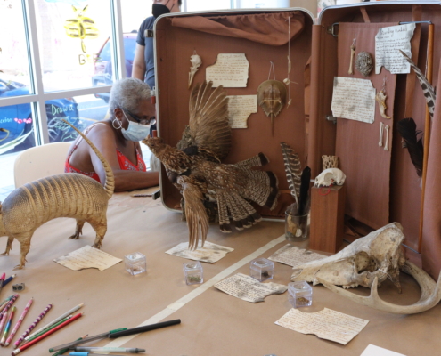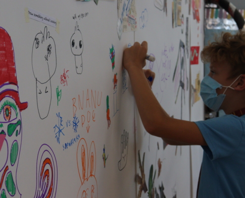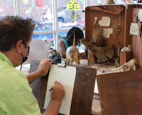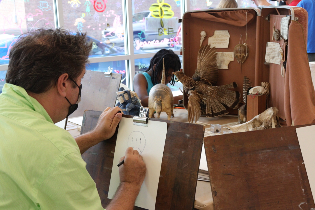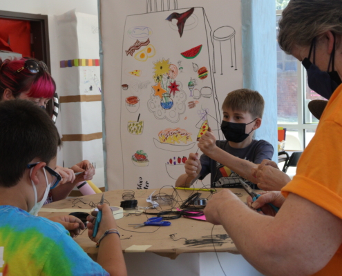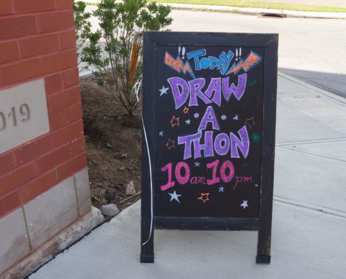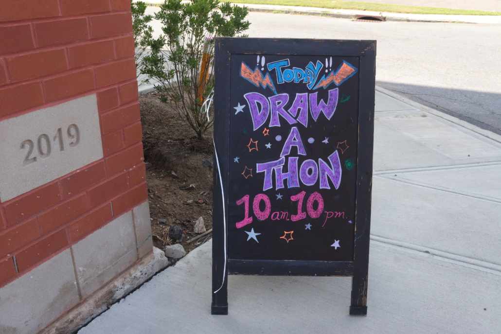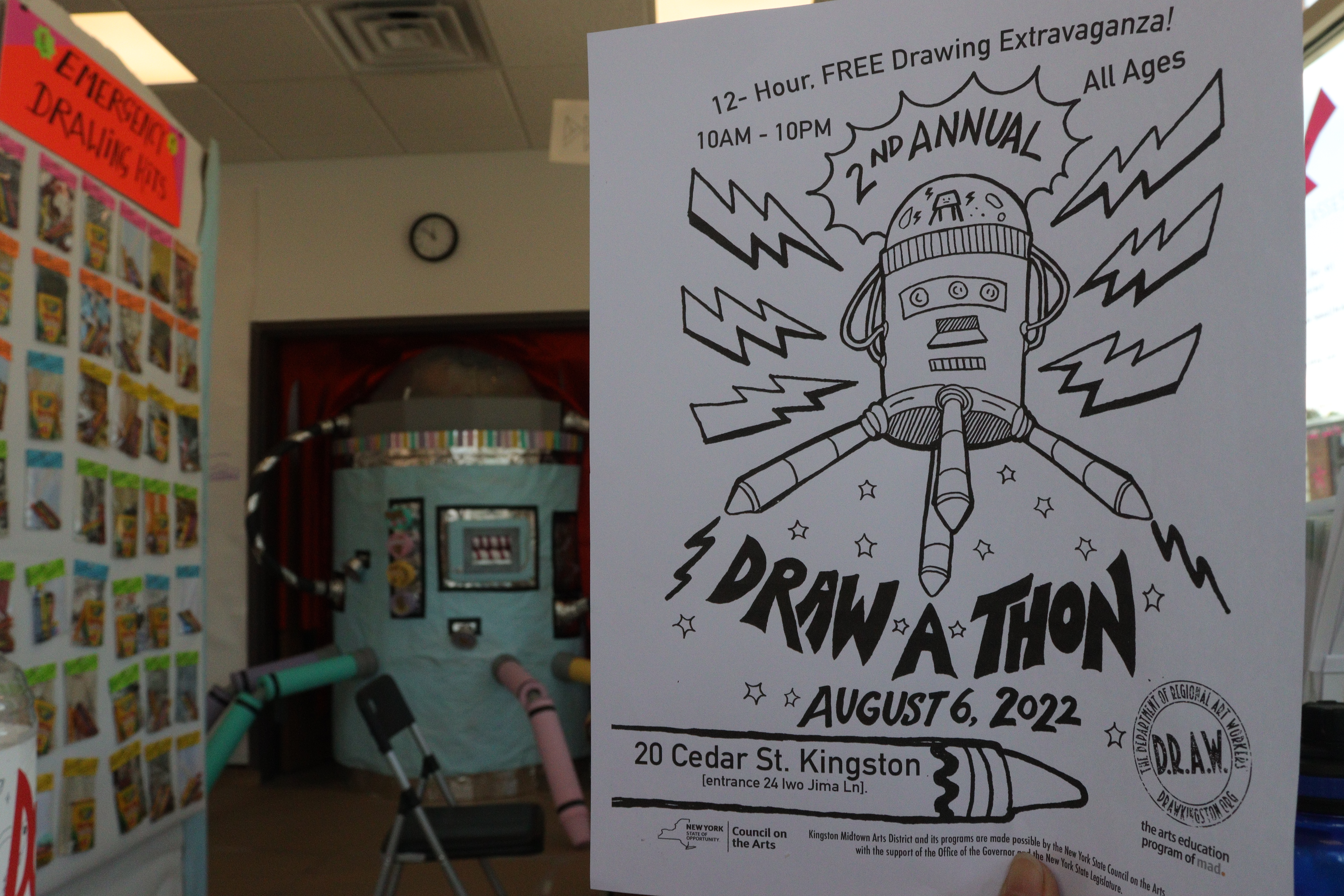 Inspired by the renowned 24-hour event by the same name hosted by Antenna in New Orleans, the DRAW-A-THON is Kingston’s own 12-hour drawing extravaganza! From 10am-10pm paper covers the floors and walls of our studio and visitors of all ages, abilities, skill levels and interests are invited to use it as their personal canvas. Our teaching artists and youth leaders create drawing and making experiences for everyone to enjoy throughout the day at various stations around the studio. Draw, paint, collage, make origami, or even a wire “drawing”! And most popular is our DRAW-A-TRON, our very own drawing machine. All materials are always provided. We look forward to seeing you at the next DRAW-A-THON!