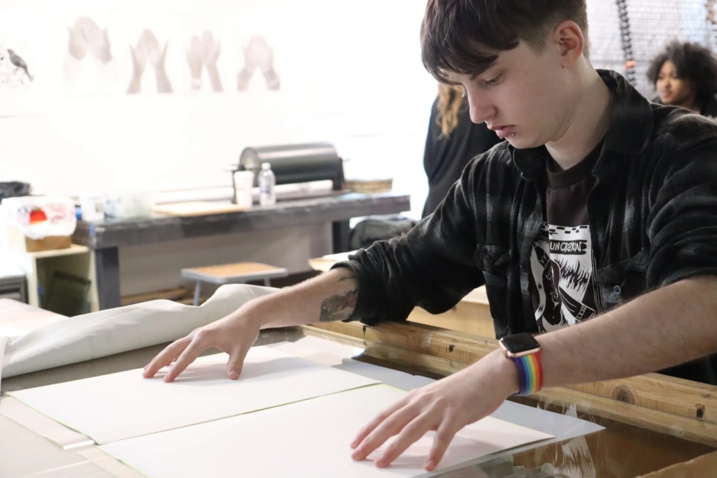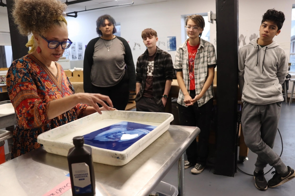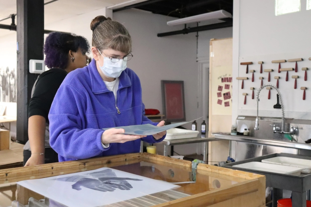 Holding Space For Tenderness is a community cyanotype project by the Midtown Arts District’s, Pop-Up Gallery Group in collaboration with artist Carmen Lizardo. Once finished, the work will Pop-Up in the storefront windows at 708 Broadway. This display will be open to the public throughout the project’s duration, allowing the work to be seen and appreciated by the entire community.