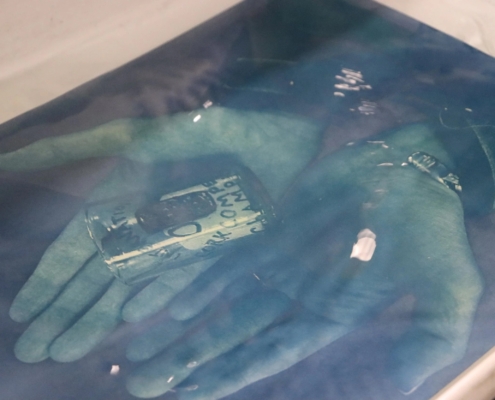 Drop in to our hands-on workshop, bring a significant object that fits in your hand, or a piece of writing. Your hands will be photographed holding your object. These photo negatives will be used to create Cyanotype prints, which will be displayed as part of the larger installation. You will learn about the Cyanotype process and see examples of the final prints.