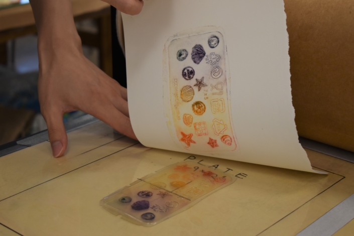 Maxine is introducing a new Curated Shorts class in Printcycling at The D.R.A.W. Studio  on  Sunday, November 7, 10 a.m. – 2 p.m.! This compelling workshop will encourage people to think about the current waste issue we have in America. Within the first 15 -30minutes, they will be introduced to the “6 R’s,” a list of eco-friendly tips that touch upon issues of environmental waste. Following this, they will learn printmaking techniques that will allow them to imprint the shapes and textures of their trash onto paper.