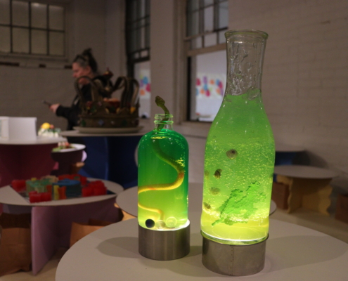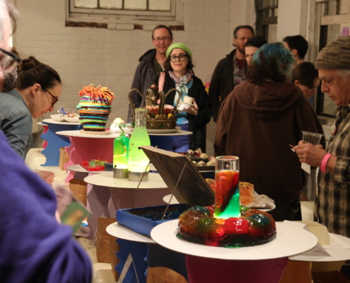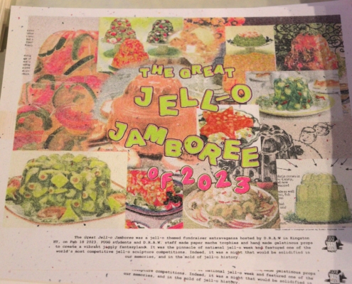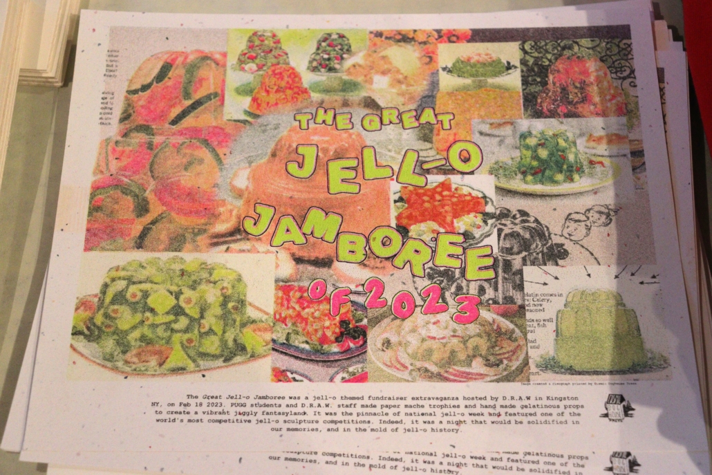 On February 18, 2023, The DRAW. the art education program of the Kingston Midtown Arts District, successfully hosted their inaugural fundraiser, The Great Jell-o Jamboree to support D.R.A.W. Arts classes for all ages and the PUGG Youth Workforce Training program. Imagine a Jell-o sculpture competition featuring 12 artists with music, dancing, art, food, and lots and lots of wobbly community fun. Guest enjoyed boozy Jell-O cocktails while getting jiggly with DJ Mikey Palms. This unique event included a Jell-O cake walk, photo ops in our photo booth, Jell-O prints made by local artist and samplings of colorful and sometimes Jello-O-filled food and drink creations were on display. It was a one-of-a-kind evening to mingle in a gorgeous space and honor our PUGG interns, Jell-O artists, and the teaching artists and students that make up the D.R.A.W. community.